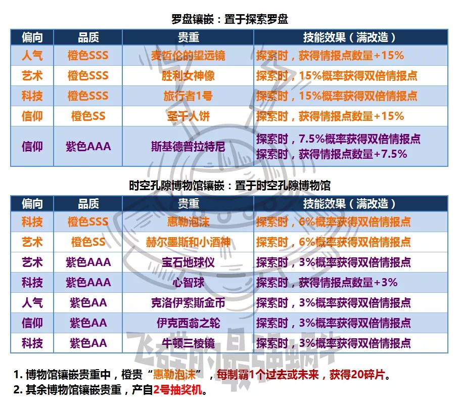 (3)罗盘和博物馆镶嵌,见表