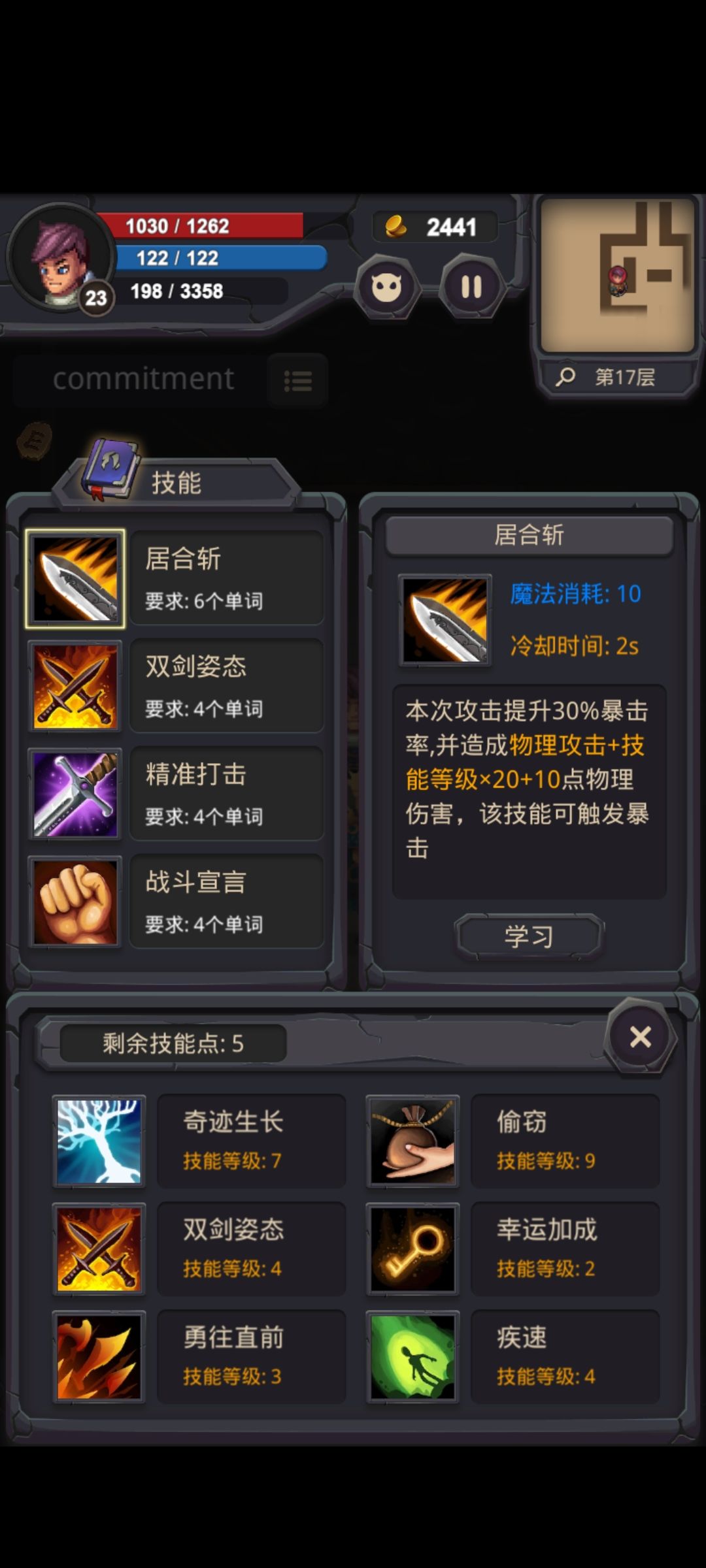 比如在居合与双剑中挑选刷词的技能,我选居合,因为它要求我对5错1,刷的效率高。