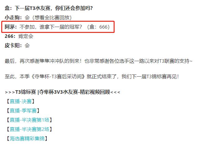 小盒:最后一个问题——下一届T3水友赛,你们还会参加吗?