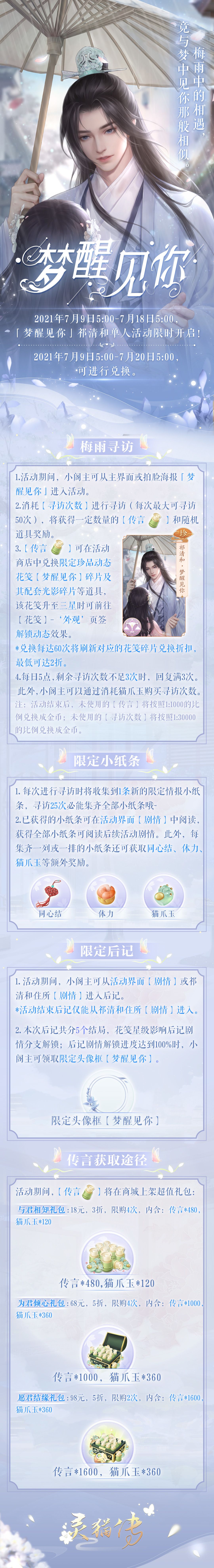 7月9日5:00-7月18日5:00,「梦醒见你」祁清和单人活动限时开启
