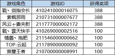 恭喜以下主公获得活动奖励,奖励会在7个工作日内发布到游戏ID邮箱内,请注意查收~