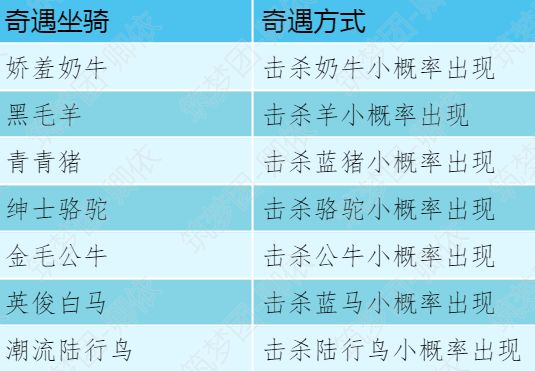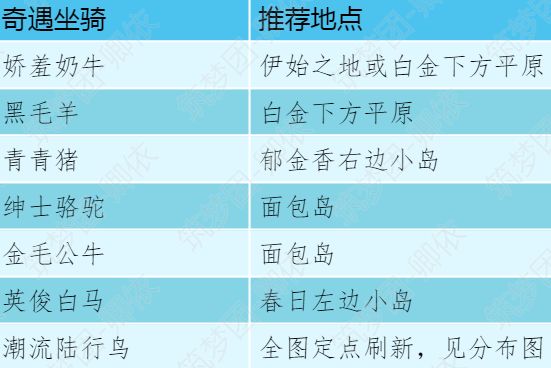 如上汇总了所有奇遇坐骑的饲料和包数(数据来源:游戏中图鉴)