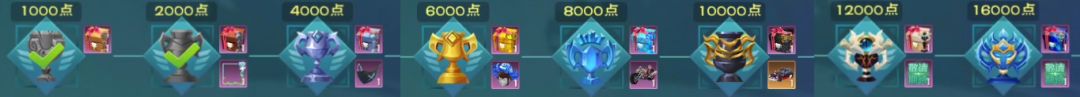 奖励分别在成就1000,2000,4000,6000,8000,10000,12000(未开放奖品),160000(未开放奖品)