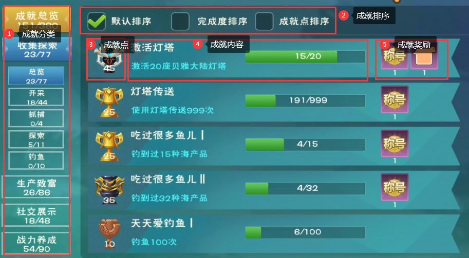 ※成就系统对各个成就进行了分类,并支持成就排序,让玩家更好检索成就