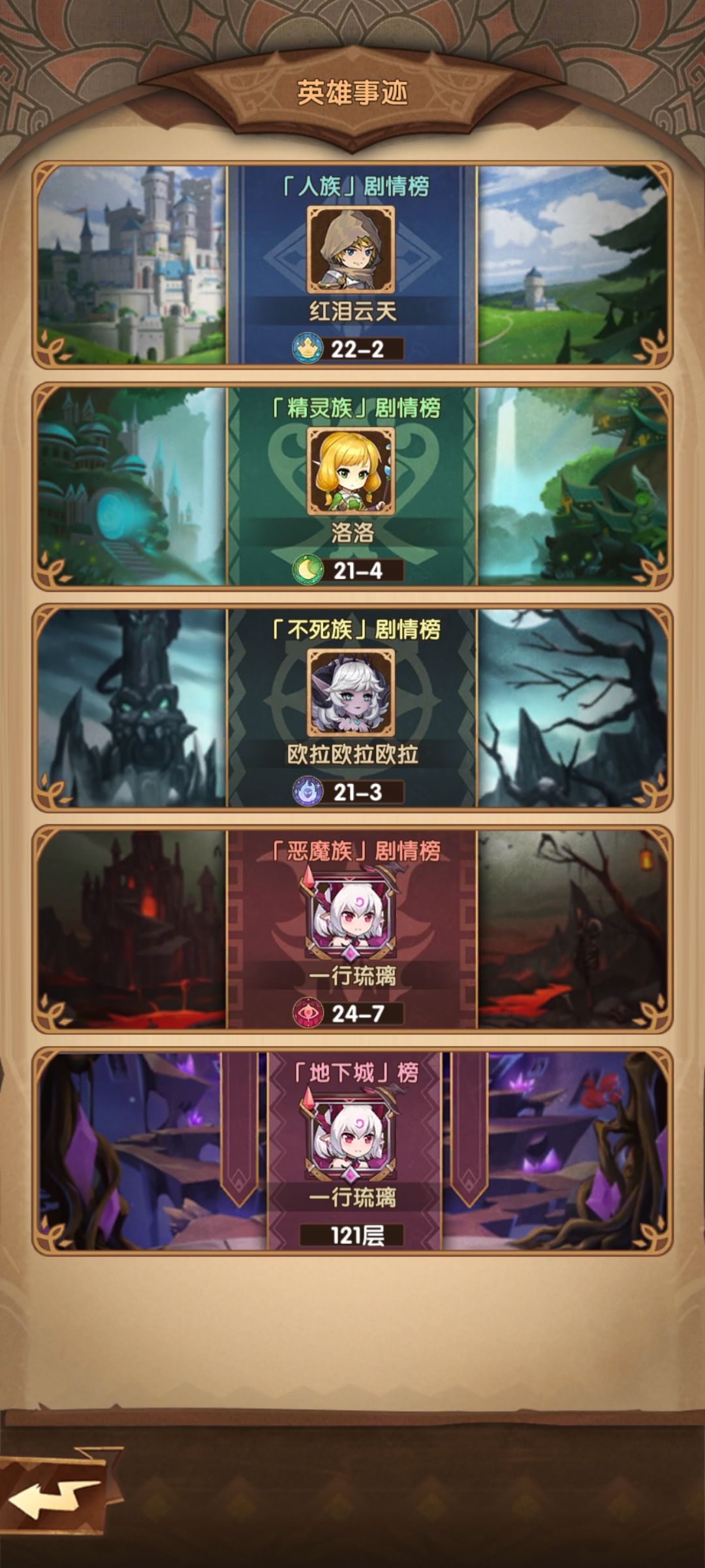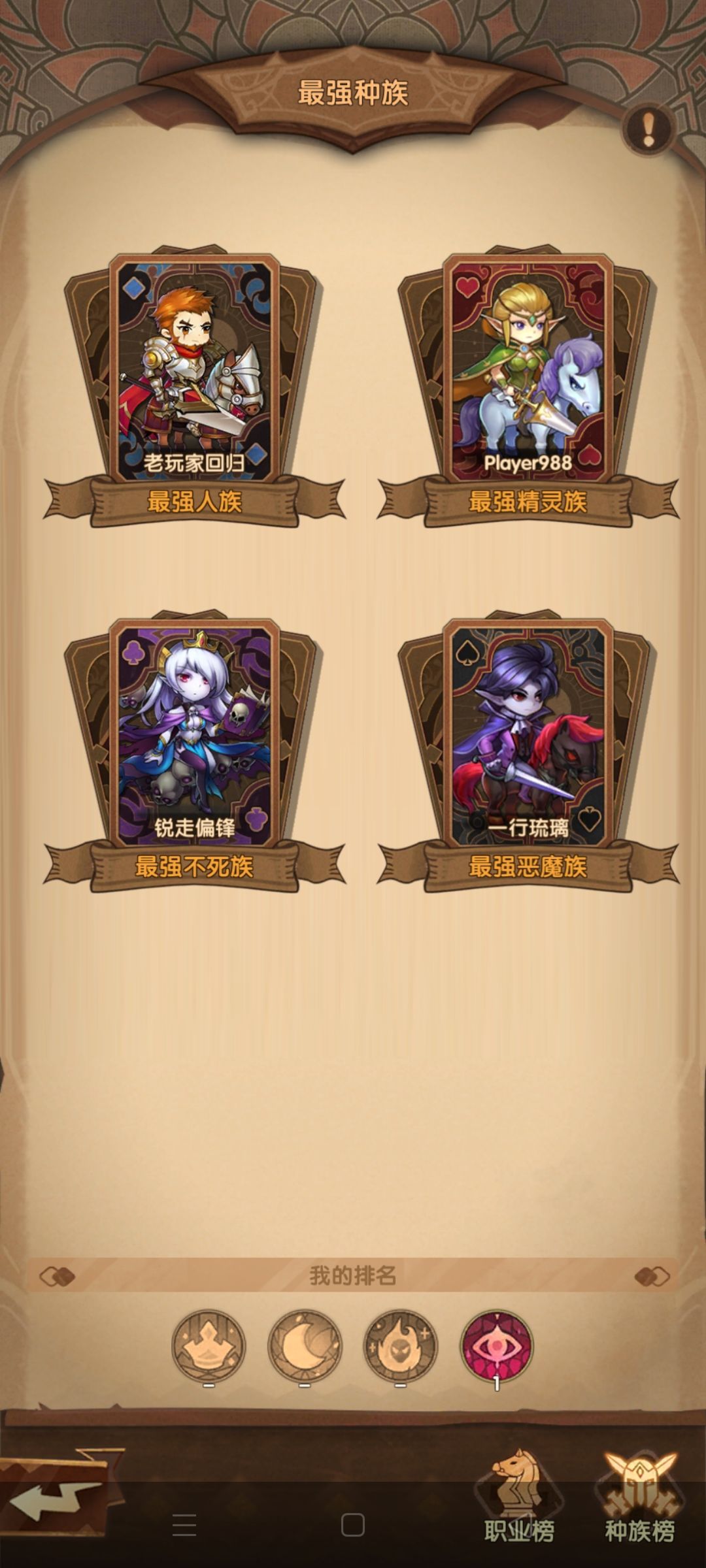 之前玩过纯精灵和精灵混不死推到了36-10就退坑了。这恶魔也是前期有个南瓜占星天使撑着,足足6天才开启孤皇,打个最强职业这马兵就离谱高2倍战力打了几次才过!换成其他种族应该早一两天就过了吧,不敢想象0氪恶魔前期有多难受!这个黑龙是真有毒,第一个买的皮肤结果目前钥匙不算抽了34000左右钻石一个没有抽到。。前面抽ssr几率吓人后面1万钻才拉回点出ssr率。。。第二种族不该开精灵的。。现在第三种族还没开,是开人族还是不死?