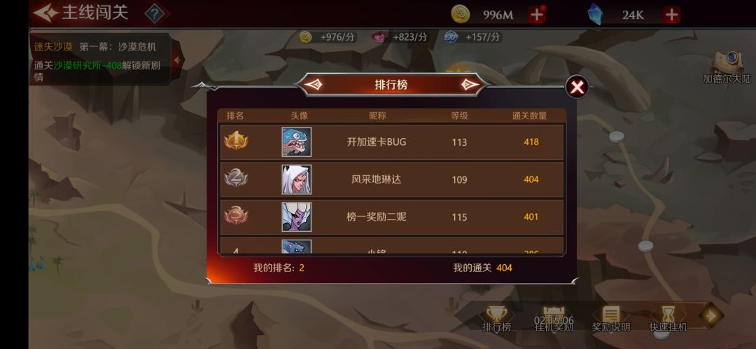 排行榜记录当前全服玩家通关进度。