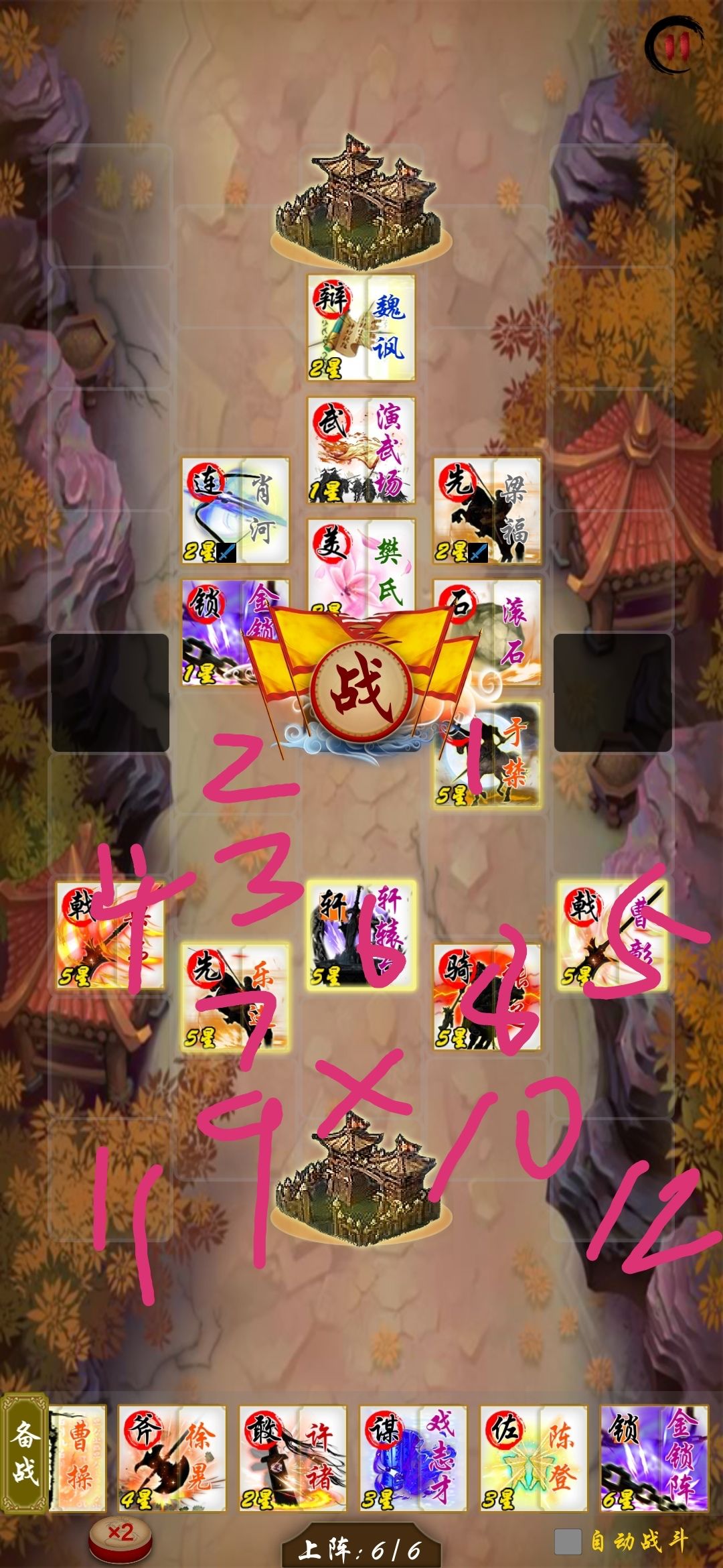 我这里中间把许褚放到了3号位