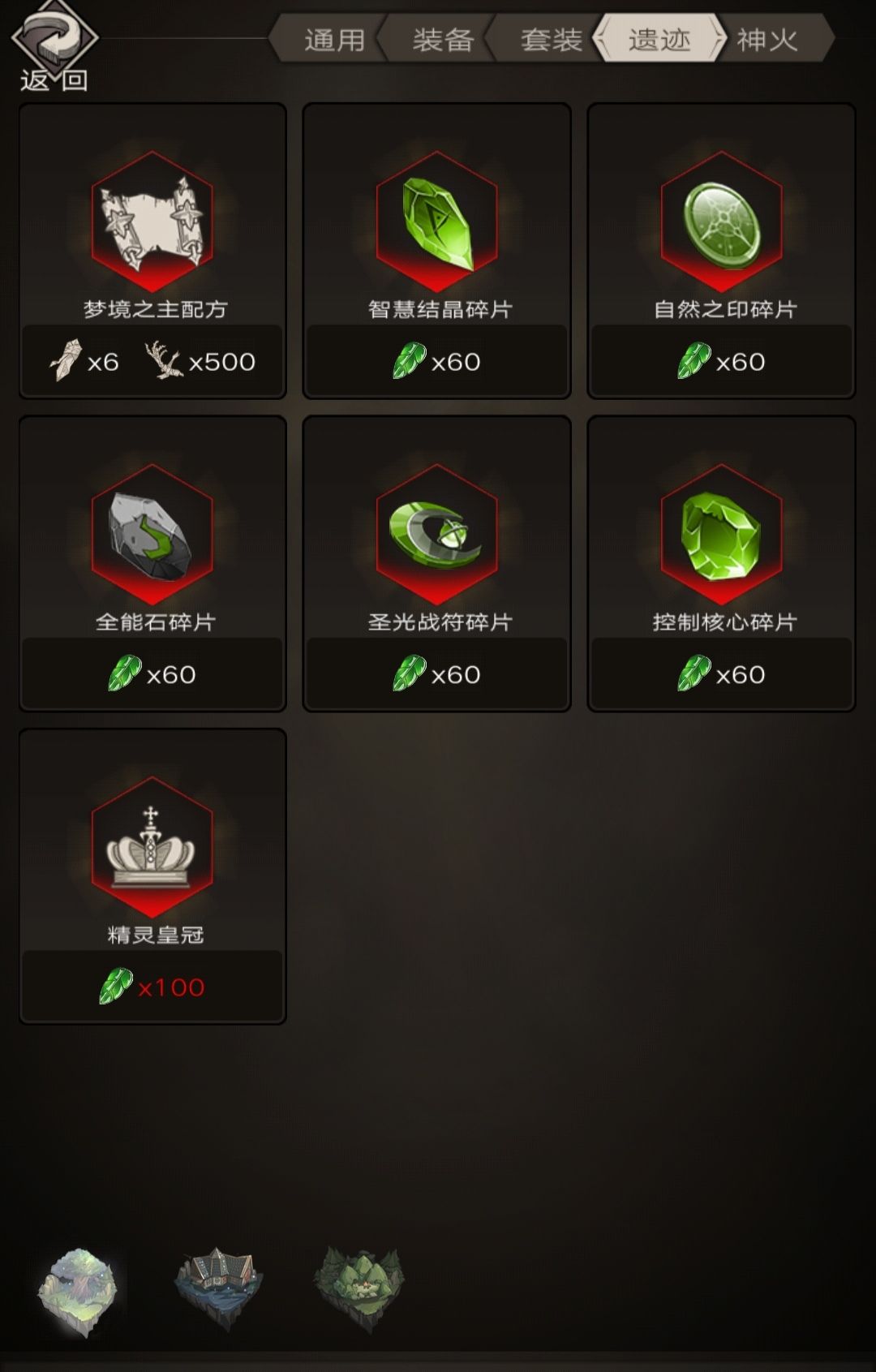 先遣服的深渊遗迹产出圣物系统的相关材料,在通关相应难度以后,可以在兑换页面兑换相应的材料,具体可兑换的东西如下: