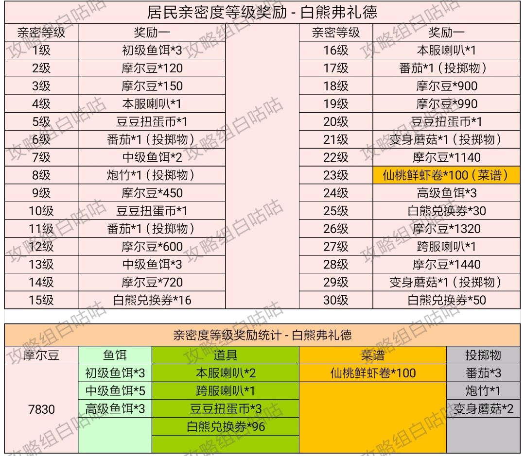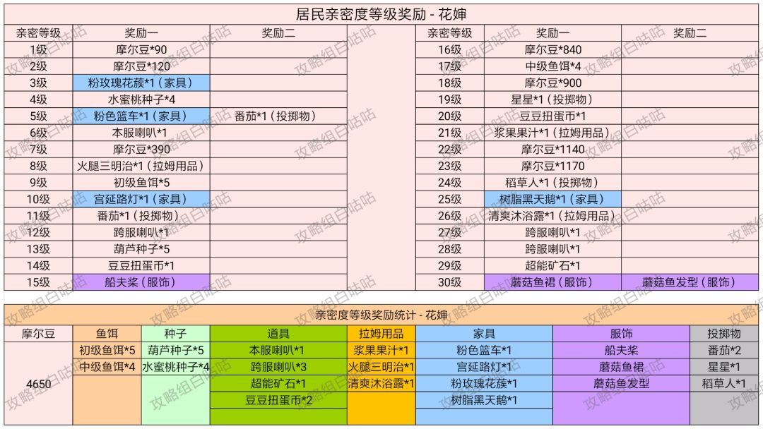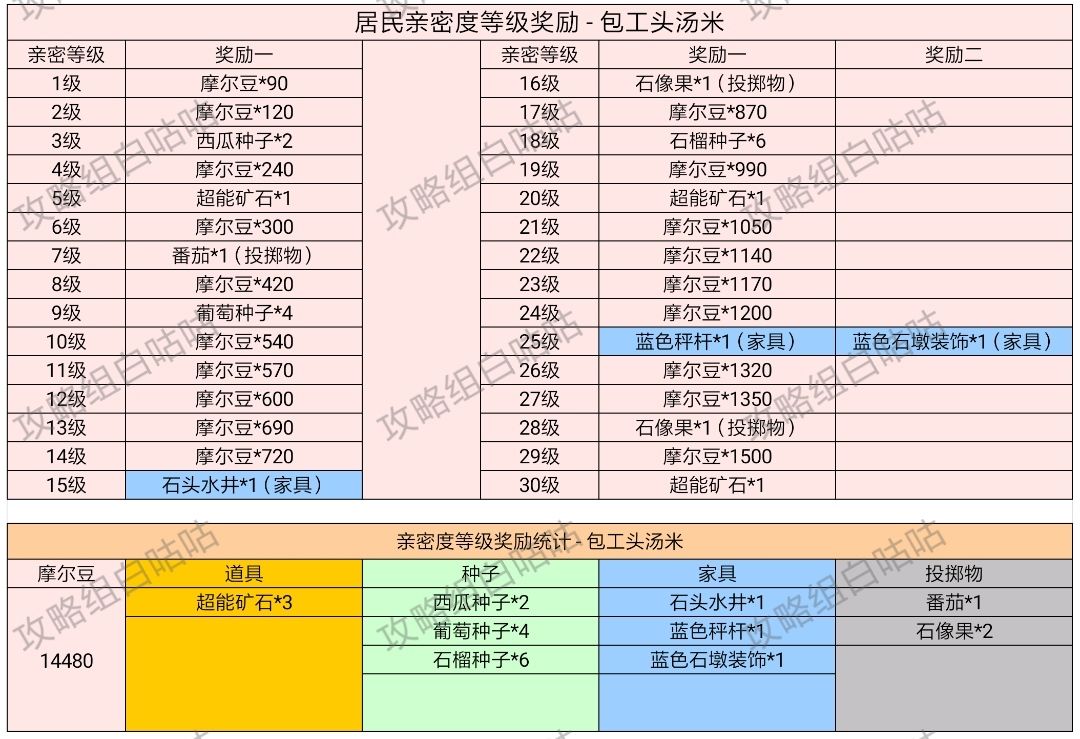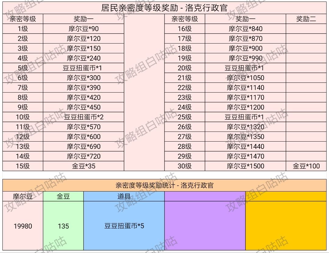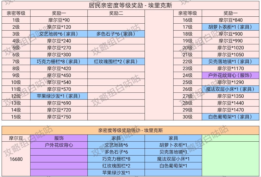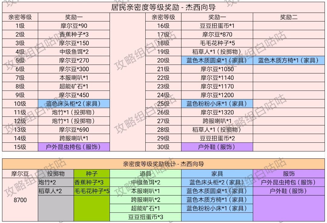 【居民亲密度等级奖励】表格统计
