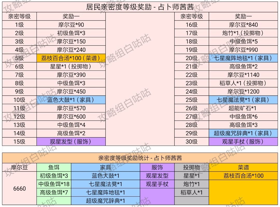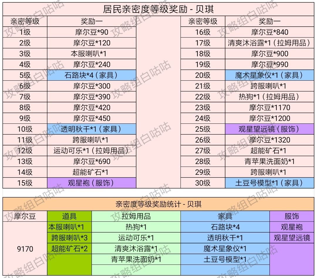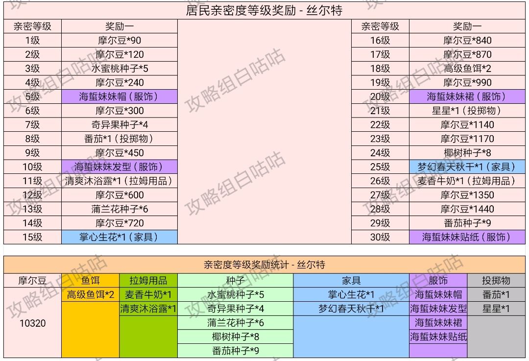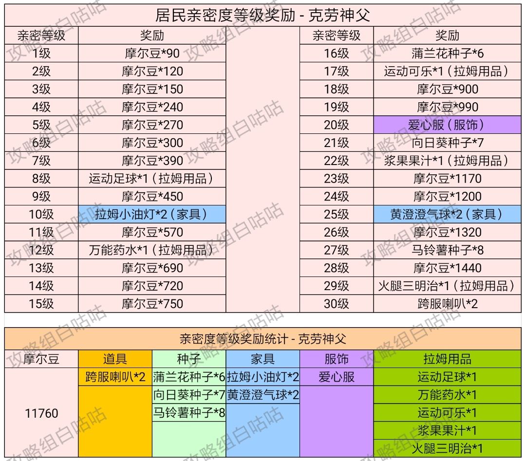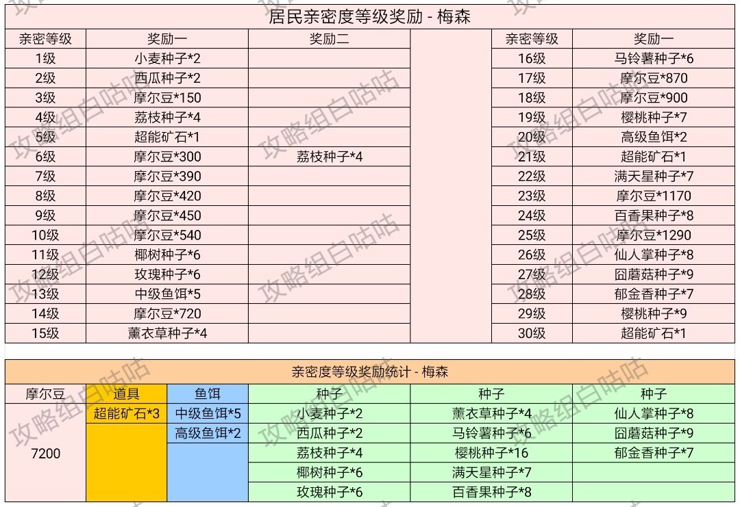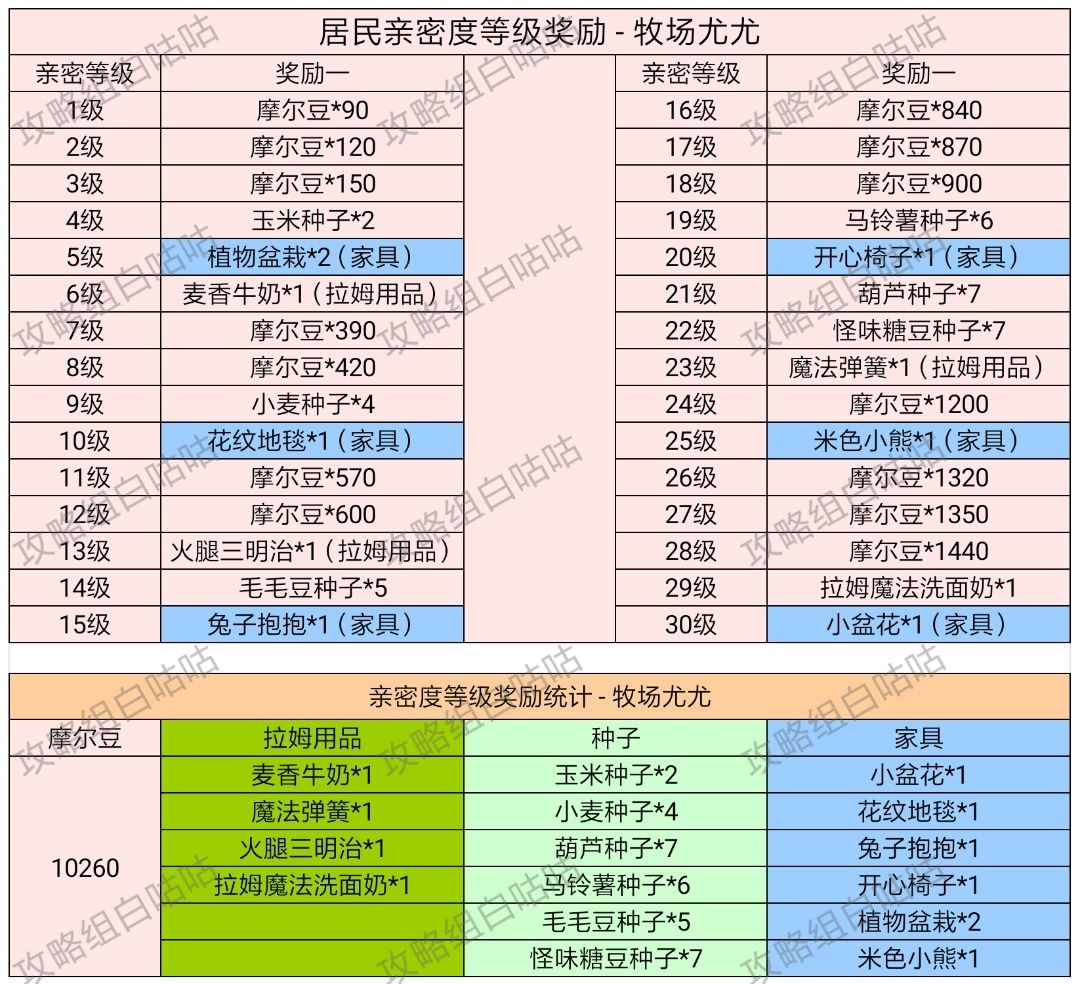 【居民亲密度等级奖励】表格统计