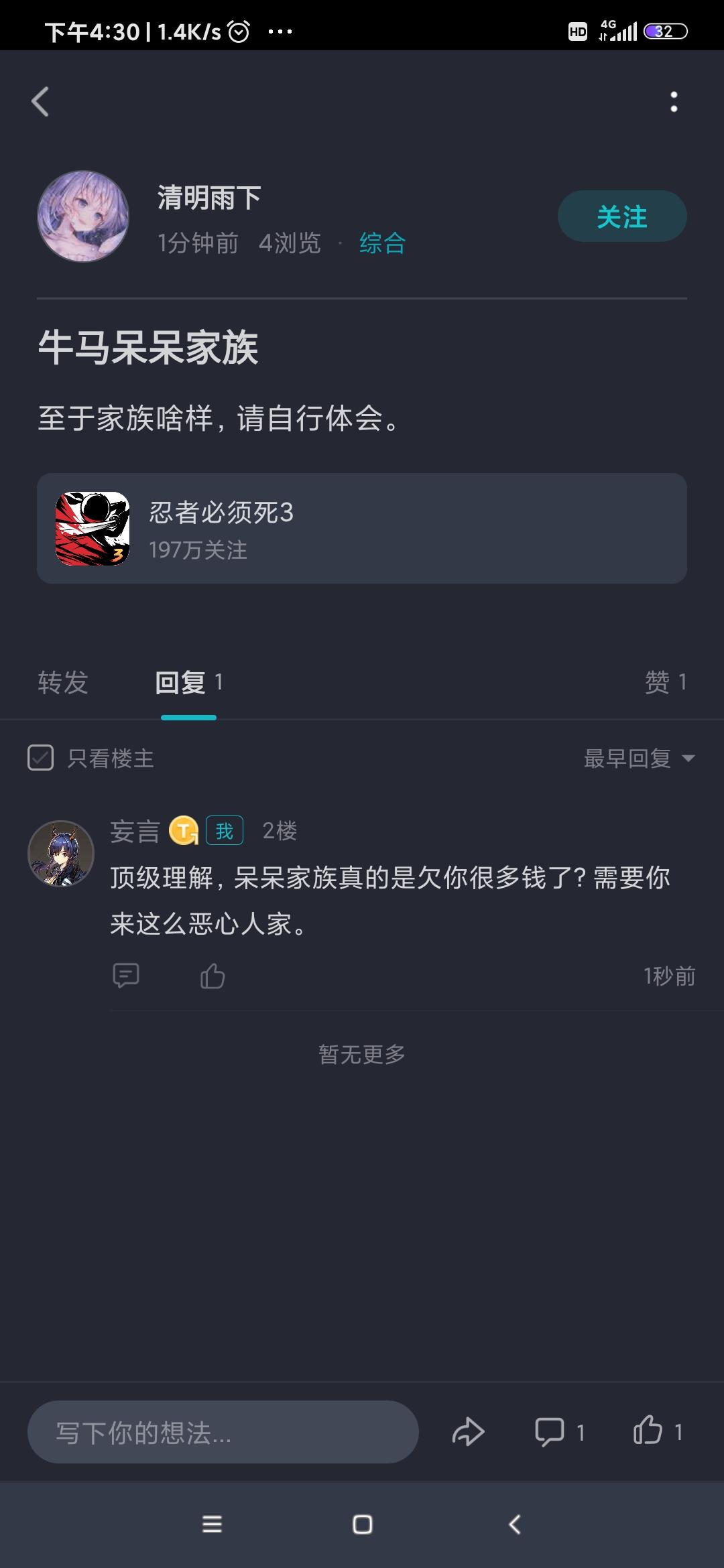 六点了,从三点的时候,我发帖说退出脚本瓜的讨论,结果自己帖子还是惨遭毒手,被人上门拜访,不得不又出来跟这些人讲道理了。