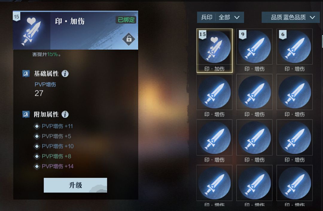 使用其他兵印升级后,兵印将会获得额外附加属性,不过需要小霸王们注意的是,属性数值的品质是不固定的。所以升级兵印获取附加属性时,也像在玩一场刮刮乐,谁也不知道下一秒刮出来的是哪一条,真是刺激啊(霸哥含泪说道)。
