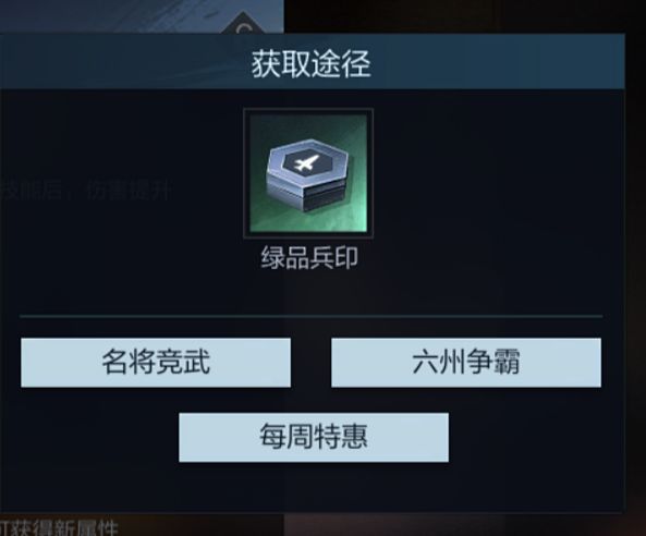 小霸王们可以通过集市-每周特惠、征途-名将竞武、六州争霸来获取不同品质的兵印。