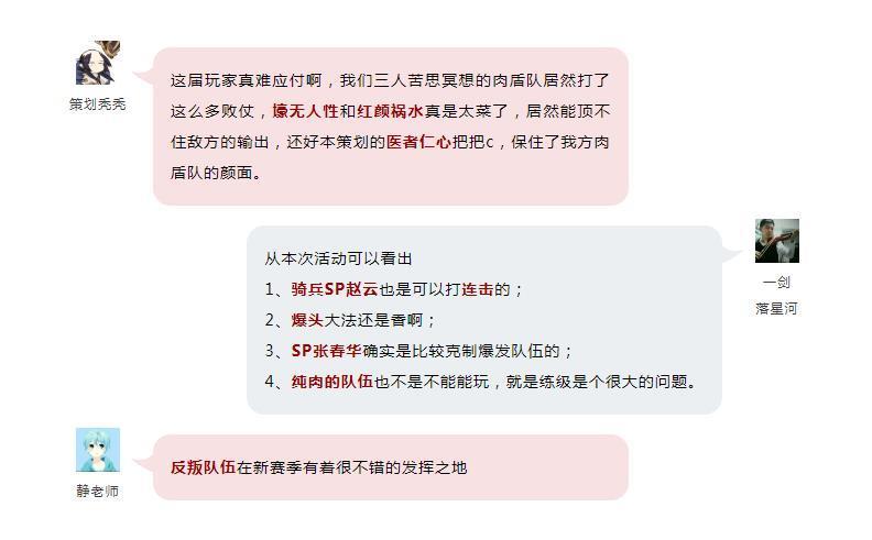 盛夏将至,情意浓浓!【肉盾大乱斗】趣味配将活动现已圆满落幕,无数主公踊跃参与分享创意,根据策划秃秃和学府大神提供的肉盾流阵容,提供出众多极具特色的趣味名称,以及能够针对肉盾流进行反制的配将思路,小图也从中学习到大神配将的精髓。