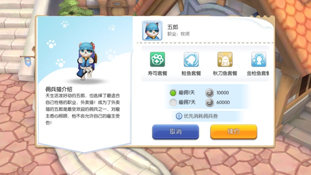 在普隆德拉3点位置可以雇佣佣兵猫,佣兵猫有强力的辅助技能。可雇佣两只佣兵猫,