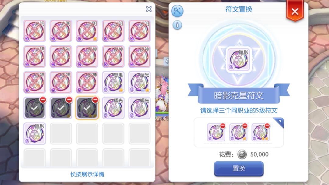 符文置换:消耗三个本职业符文,可以指定合成本职业符文