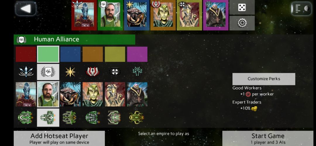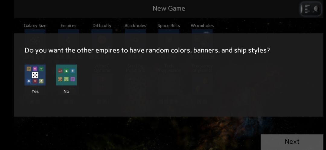 首先增加了一个新的开局选项: AI是否会使用随机的颜色出现(配合下文)。如果关掉这个选项,那么只有玩家可以变换。