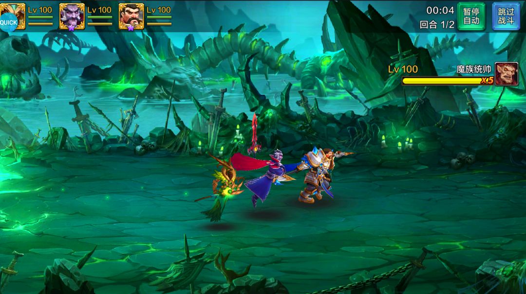 参加战斗的各个武将,每个武将都有两个主动技能以及N个被动技能,在战斗中当下方的技能图标移动到右边时表示cd已好,点一下就可以点掉释放技能了。而通过操作将两三个同一武将的图标聚集在一起,就可以发动更强的技能,这也是本作被称为横版三消的由来。总体来说这个玩法虽然不是原创,但套在三国背景下玩起来也不乏乐趣,带有一定的策略性。