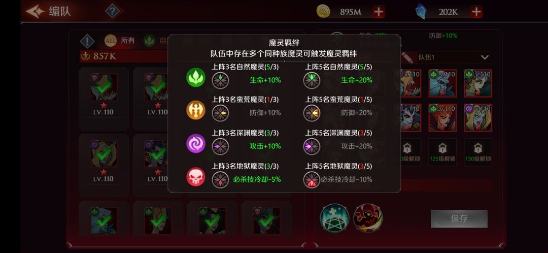 上阵后的魔灵,根据魔灵羁绊要求可激活阵容加成。(相同加成取最高,不叠加)