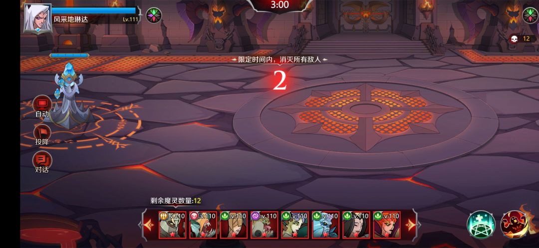 对自己战斗力很有把握的可以点击左侧“自动”,系统将按顺序自动为你投放魔灵,ai还算可以,近战都会放前排,远程会放的有点乱,但都在后排。