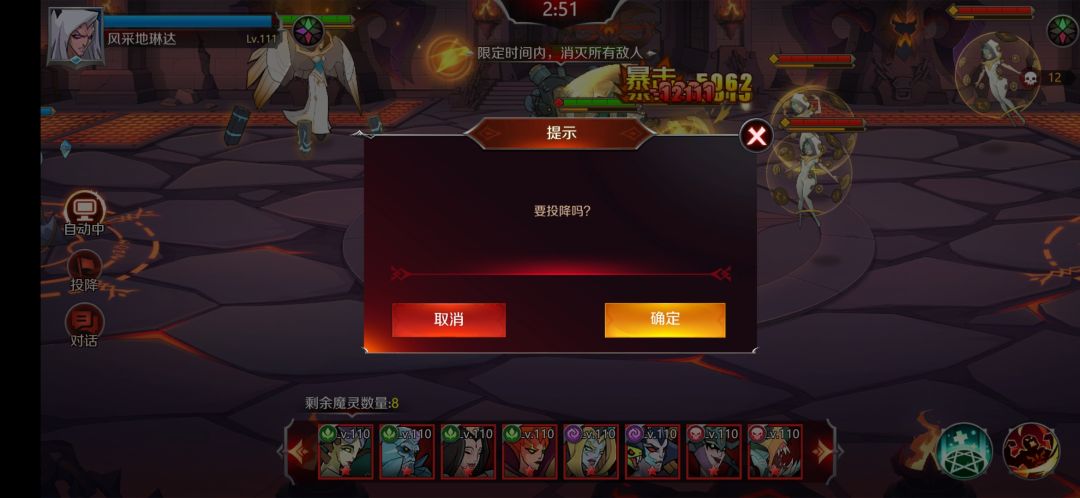 如果打不过,或者感觉自己当前策略有大失误想重来,也可以点投降。