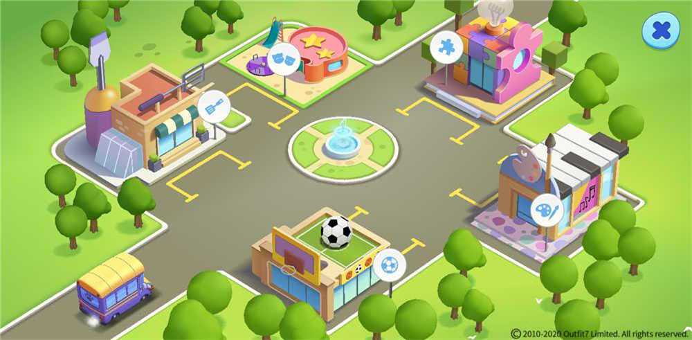 游戏的分布为五个板块,平面的。第一个板块是树屋泳池和沙地,露天的;第二个板块是衣橱、沙发、各种玩具的摆放(家具的摆放取决于你)、电视、游戏机、餐桌、厨具等等一切日常会用到的物品;第三个板块就是清洁方面的,医药箱、两个厕所、一个大大的浴缸等;第四个板块是种植花园,顾名思义就是种菜种花的,在菜地旁边还放着一台可爱的小巴士,想知道它的用处吗?那就得来到第五个板块咯——商城。你需要集齐巴士币让成员们乘坐巴士来到商城,补齐货品和需要的商品。