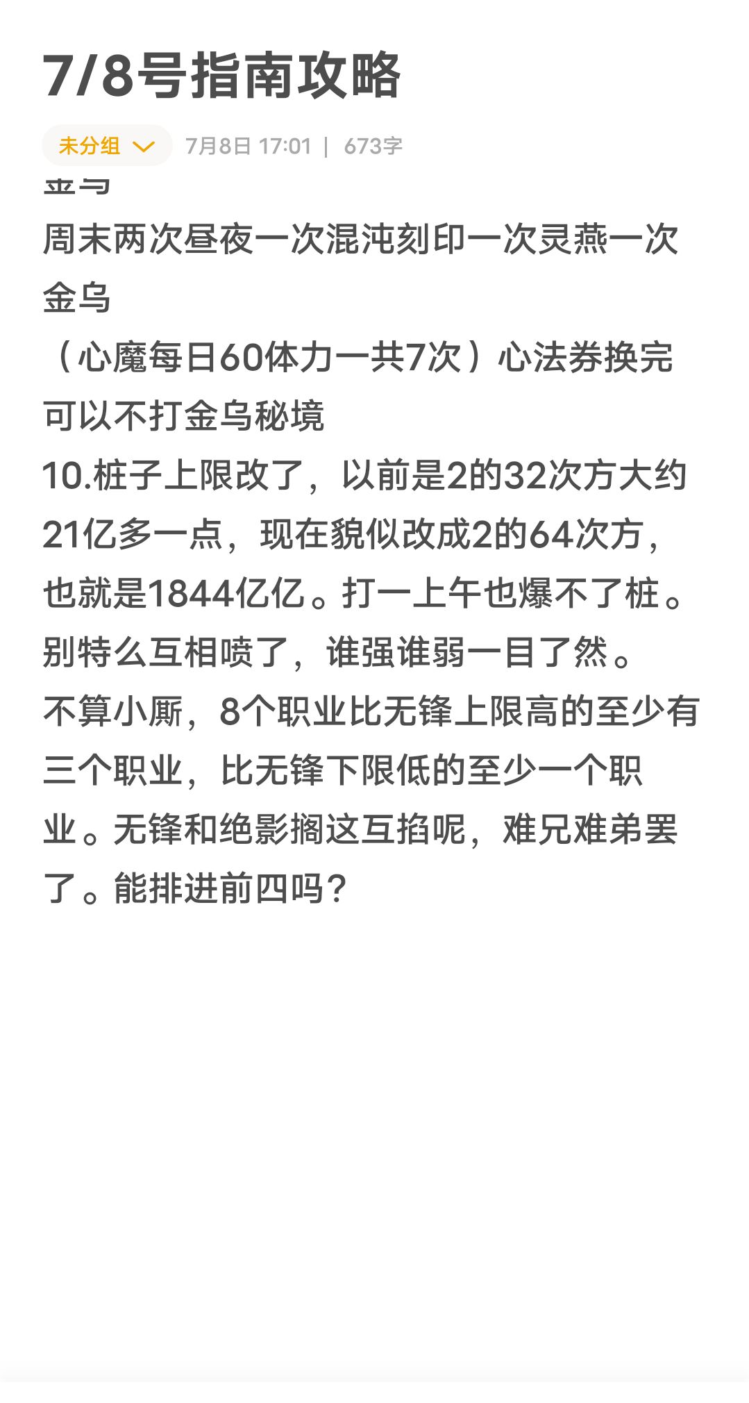 7月8号攻略,版本速递