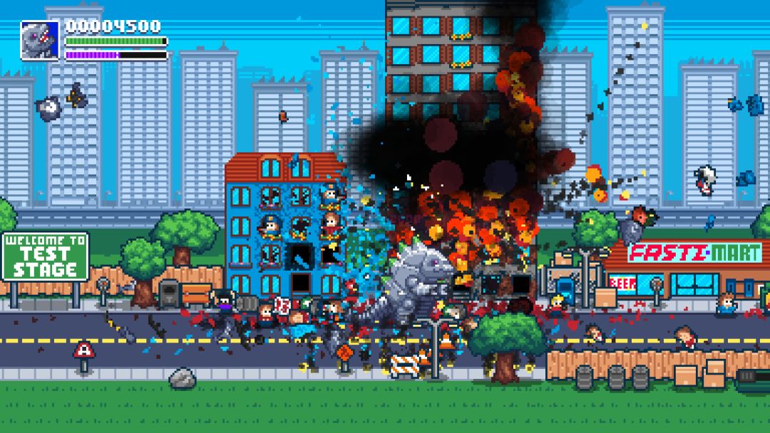 《龙龙恐怖》(Terror of Hemasaurus)是一款独具黑色幽默的复古街机风欢乐动作游戏。扮演一只巨大的龙龙怪物,对渺小的人类展现令人恐怖的庞大力量叭!在这座复古的城市里肆意破坏,享受高楼大厦霹雳吧啦轰然倒塌的爽快!游戏在支持单人作乱的同时,还支持多人本地同屏搞破坏哦~