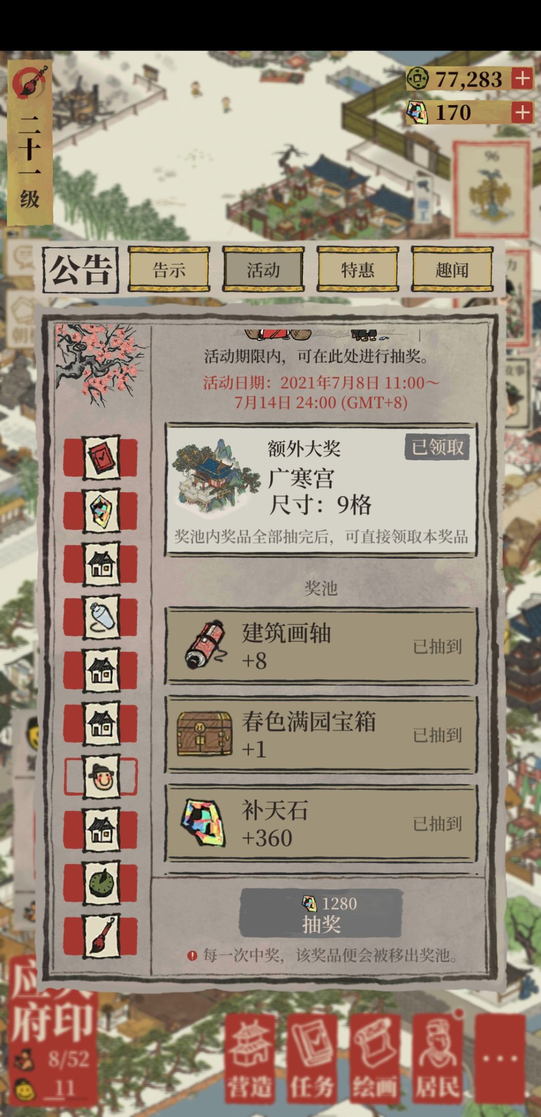 大家知道建筑画轴是做什么的吗?为什么我从活动中获得了建筑画轴却找不到在哪里使用?是不是因为我现在21级的等级没达到使用要求?