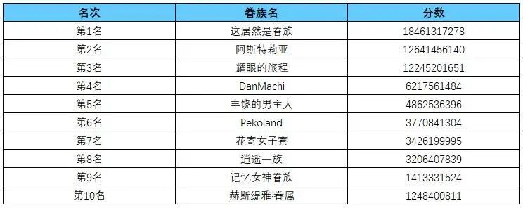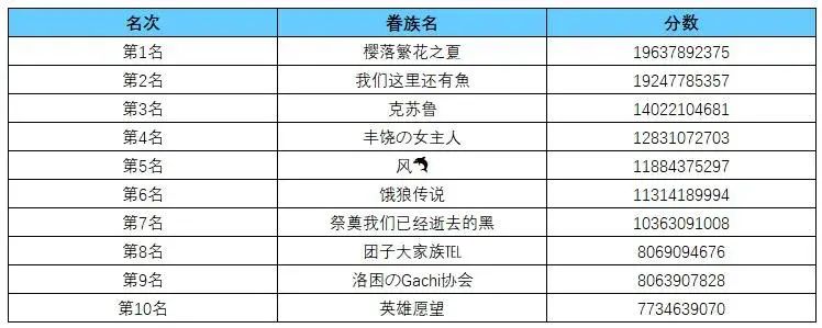 派阀歼灭战(7.1~7.7) 眷族排名公布