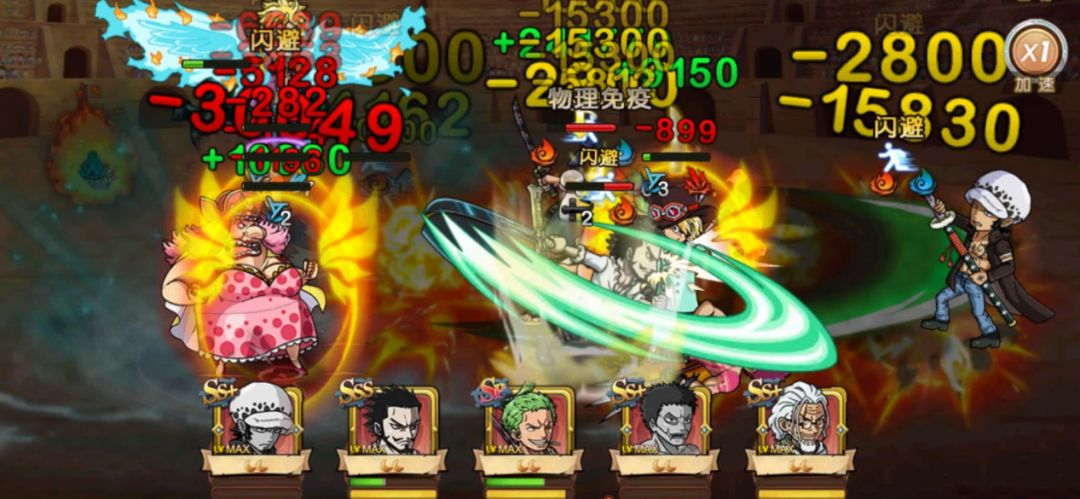 此阵容以大剑豪·米霍克+佐罗十郎+突破卡塔库栗的三中排为输出代表,将斩击暴力输出之名演绎到极致!