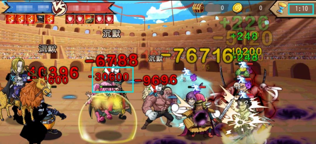如上图所示:火系队全体的血线都被压制在丝血状态,且能量也被压制。虽然己方已阵亡三人,但有罗加血恢复到健康状态的大剑豪·米霍克和佐罗十郎足矣收割战场。