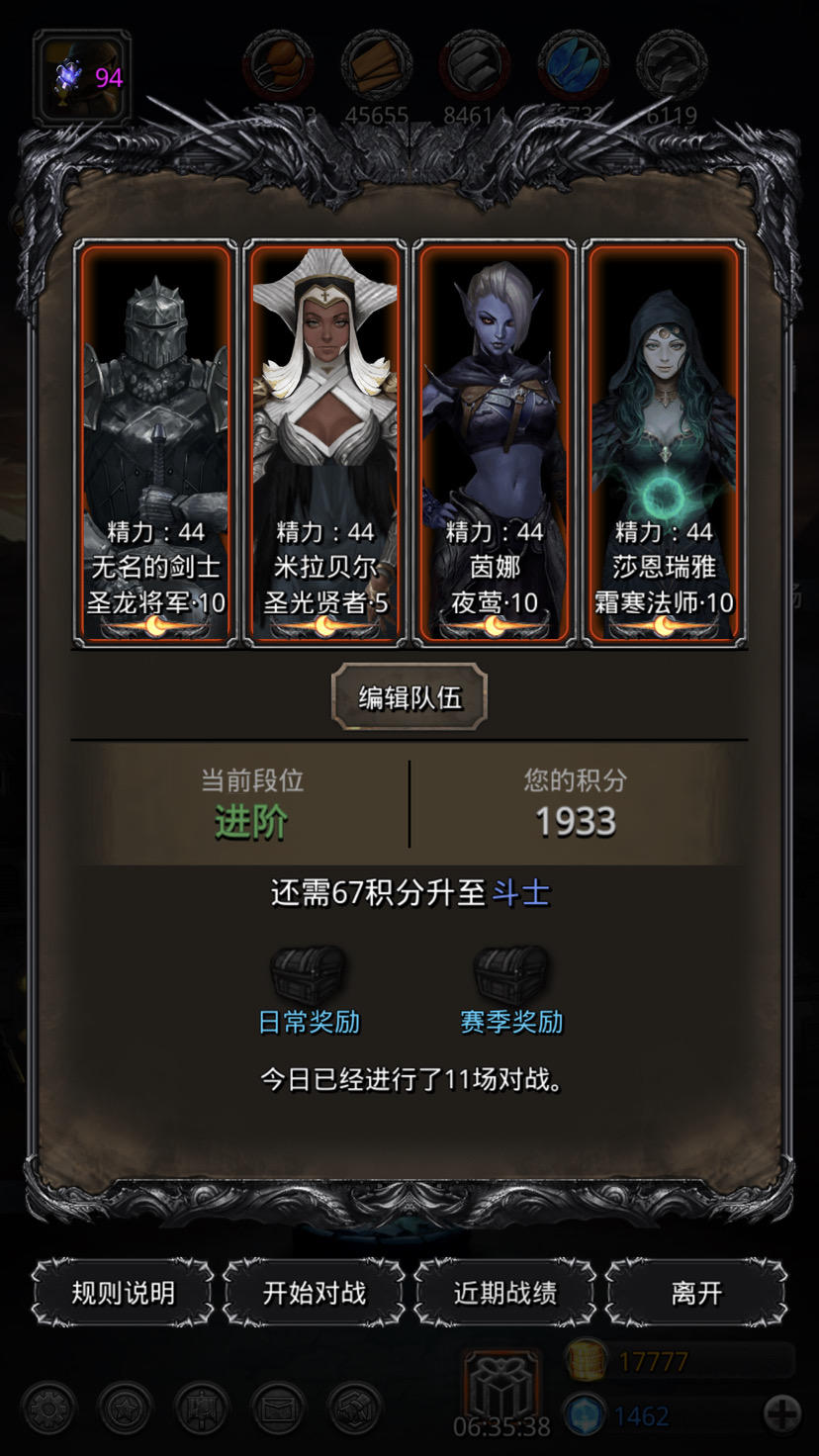 感觉圣龙嘲讽还是不错,加上刺客速度快一直切别人脆皮,竞技场还可以,就是魂太难弄了,不然我都可以月30了……