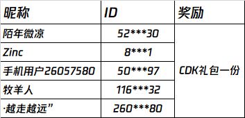 老铁们!现在来公布「晒赛季战绩,领取柴吉赛季末助力」获奖老铁吧,让我们一起恭喜以下5位幸运的老铁们~~获得王牌CDK奖励一份!