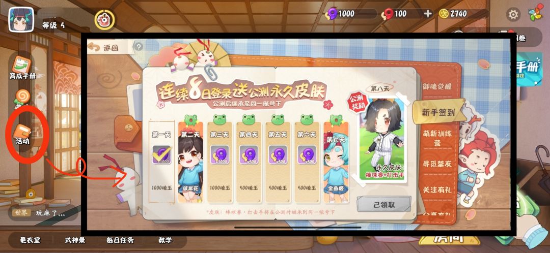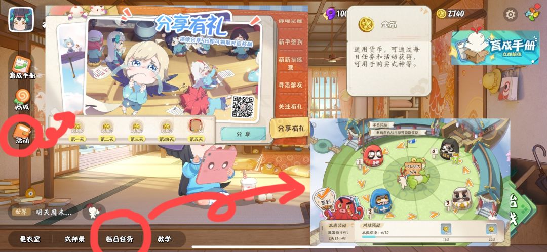 内测期间可以通过活动-分享有礼,或者下方每日任务完成每日的任务点击达摩就可以获得今日奖励啦~