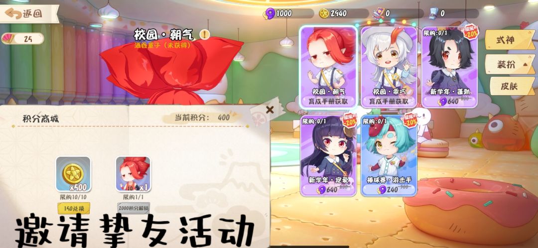 可以购买式神,皮肤来提升自己的“学期风姿度”