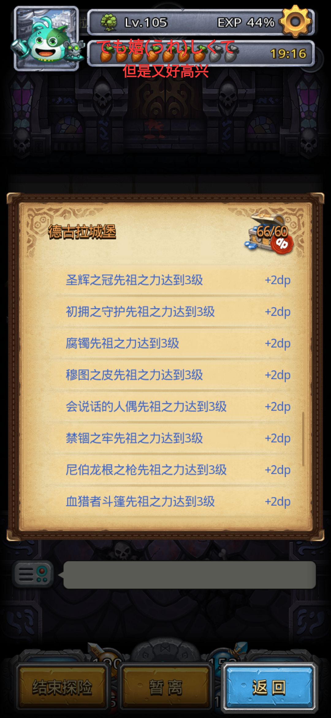到59层,清空,静电,大地,我正好回到了9层,带上圣杯,这是我们最后的机会了,神器怎么说,也满的差不多了,至此,神器全+10+3达成,dp做完,有图有真相的