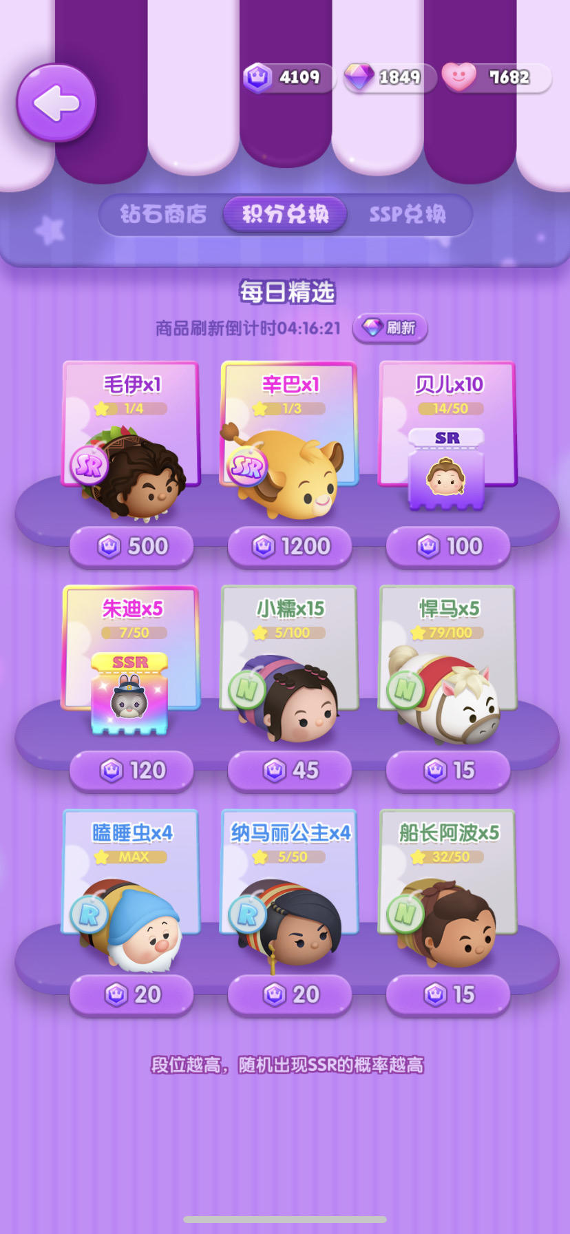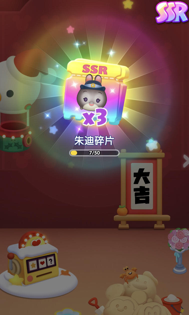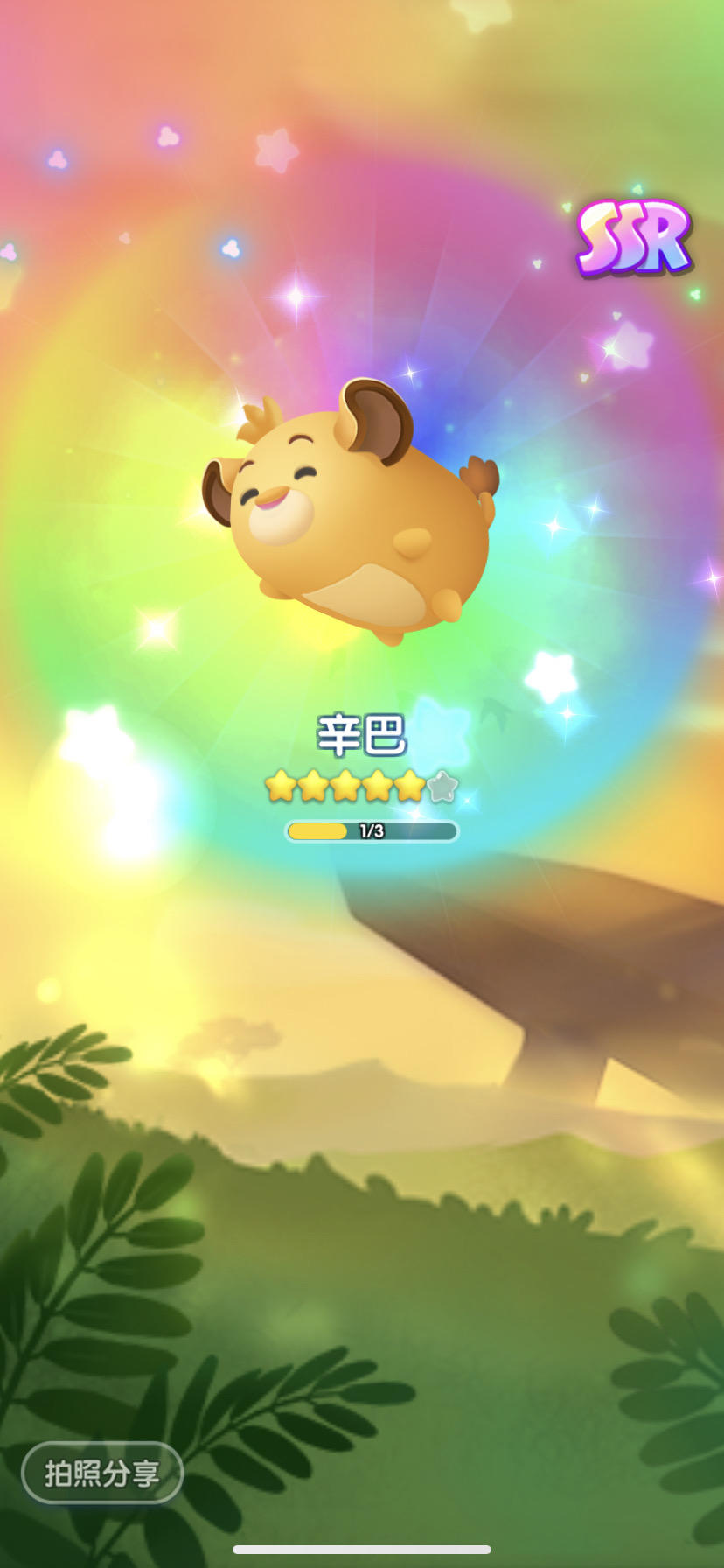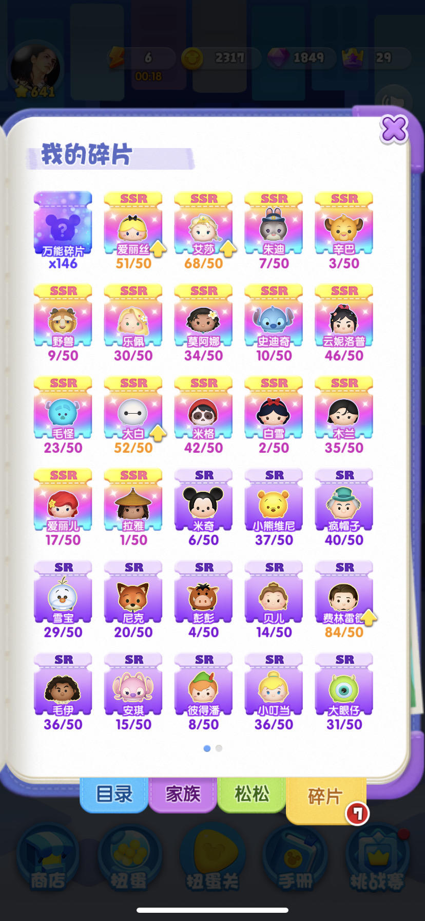 今日份的SSR碎片:艾莎x2(其中一片来自扭蛋关)、朱迪x3、辛巴x1、云妮x2、米格x2