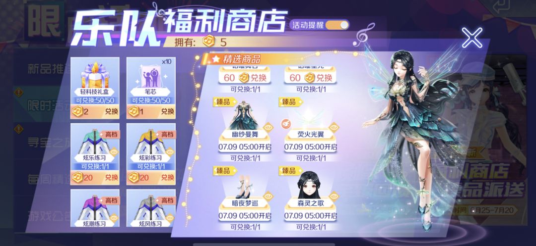 截止至7月20日,福利商店将持续放送钻曜星辰臻品&训练生团服&动作卡&轻科技礼盒!现积攒音律币即可去兑换海量丰厚好礼啦~