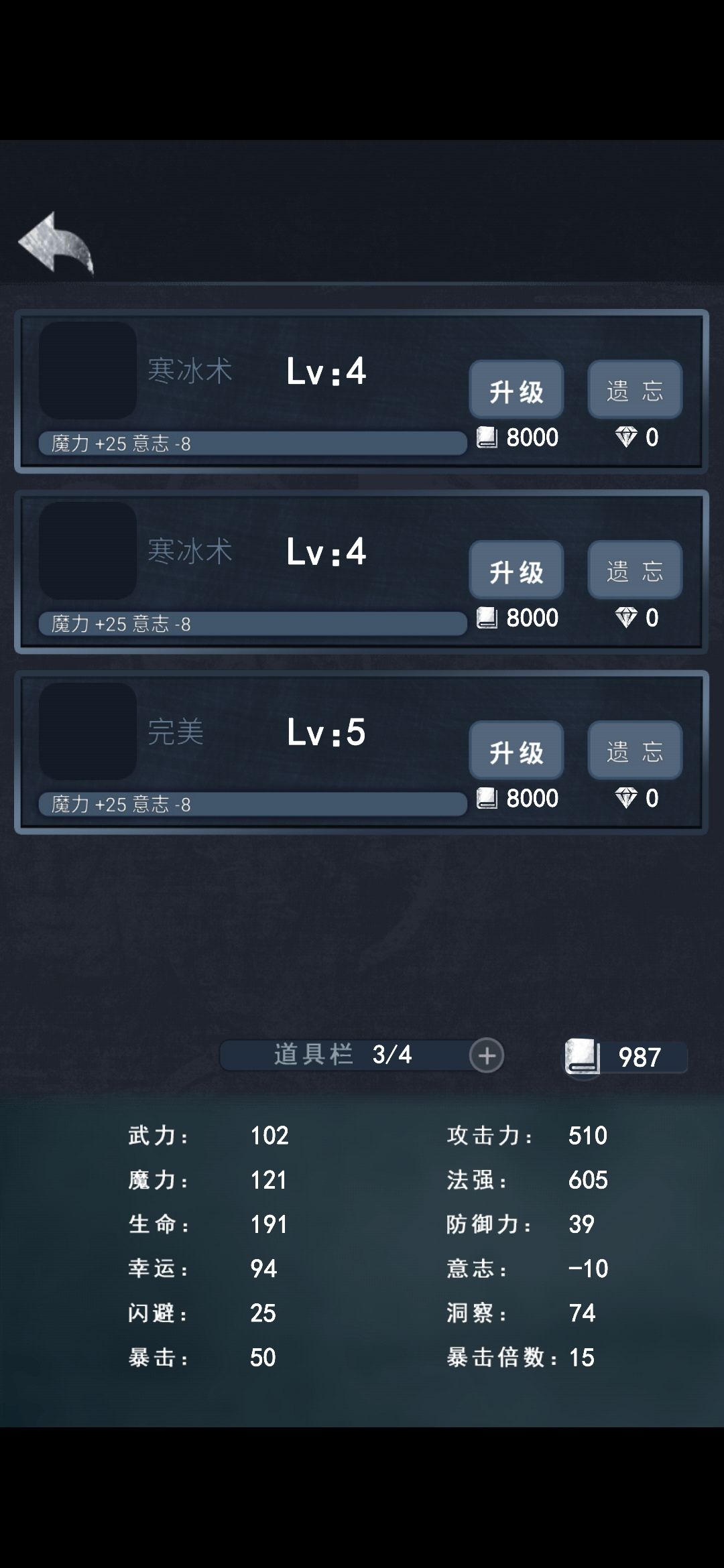 五级完美加的属性和四级寒冰术一样