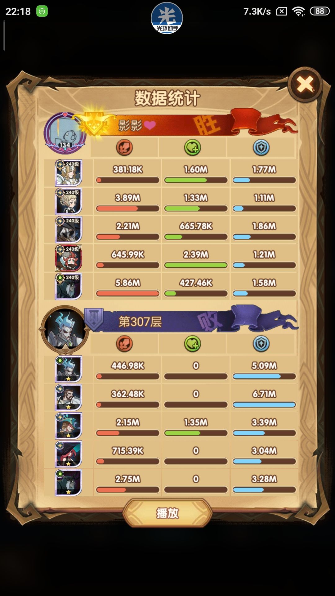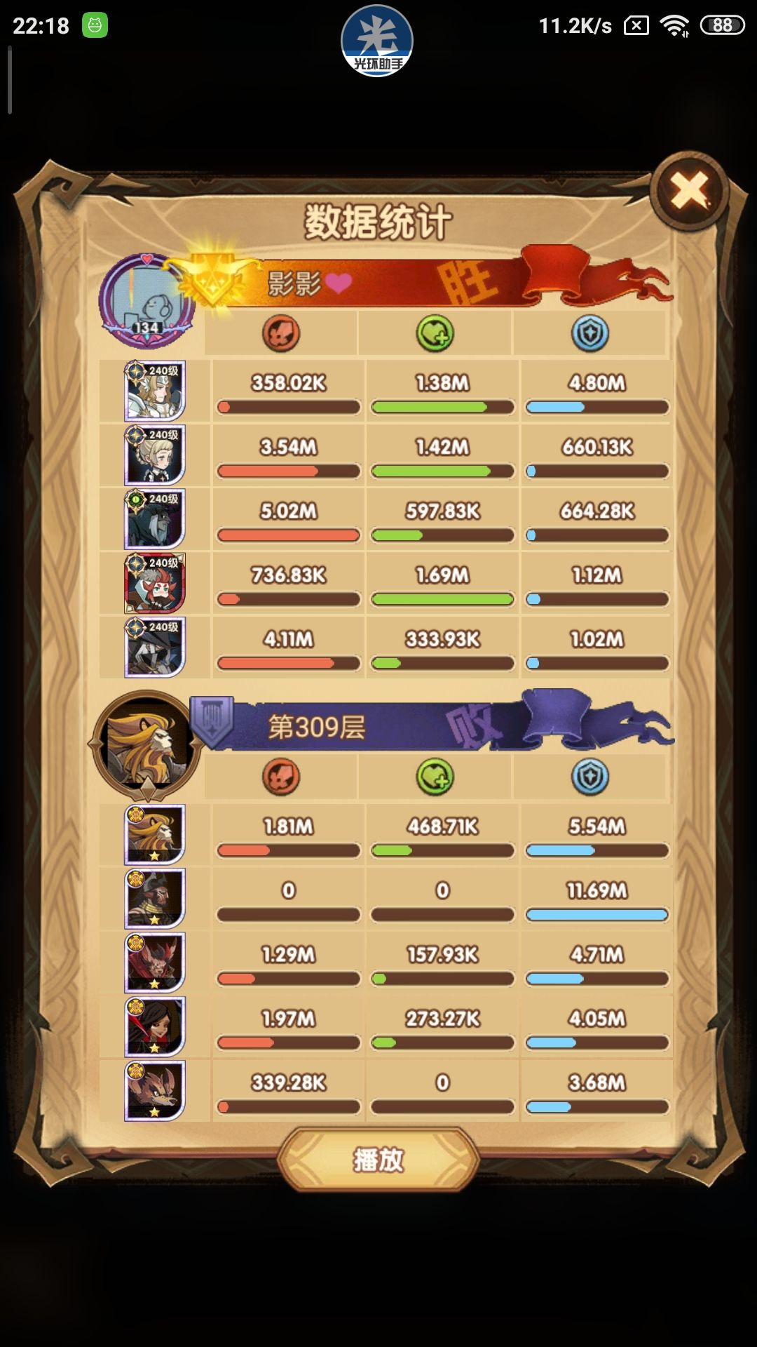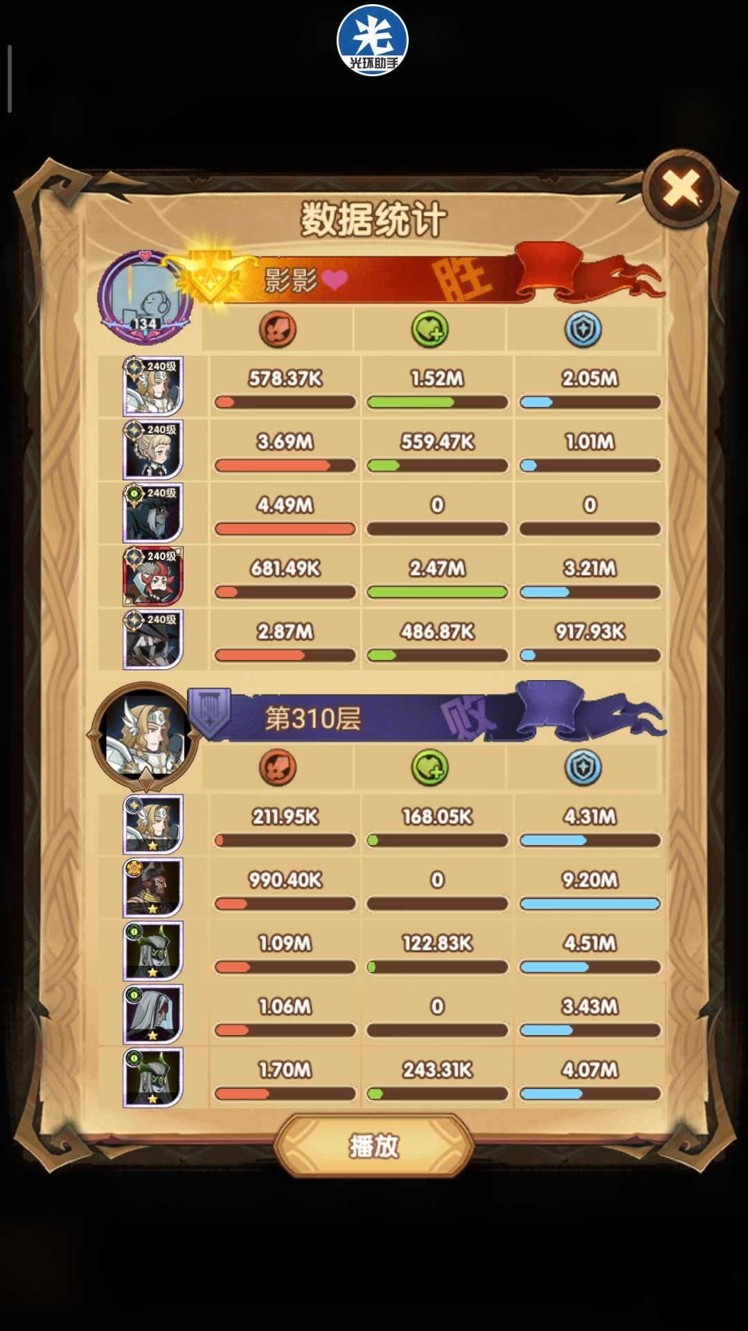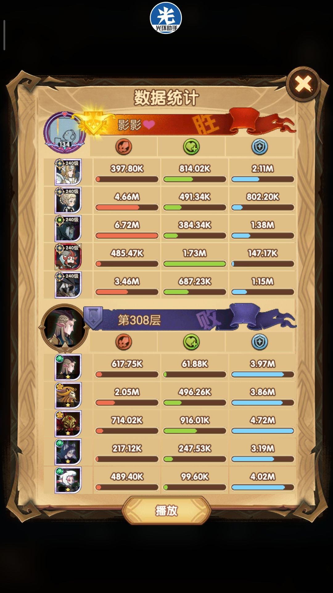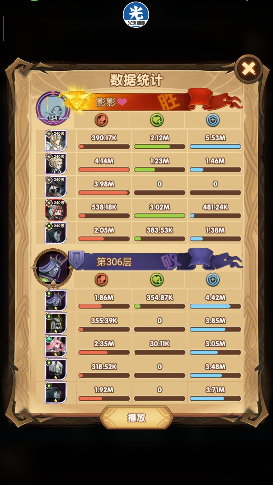 300-305使用正常240女妖即可通关,下面展示305以后女妖疲软期使用骨弓完全代替女妖的骨弓国家队攻略~