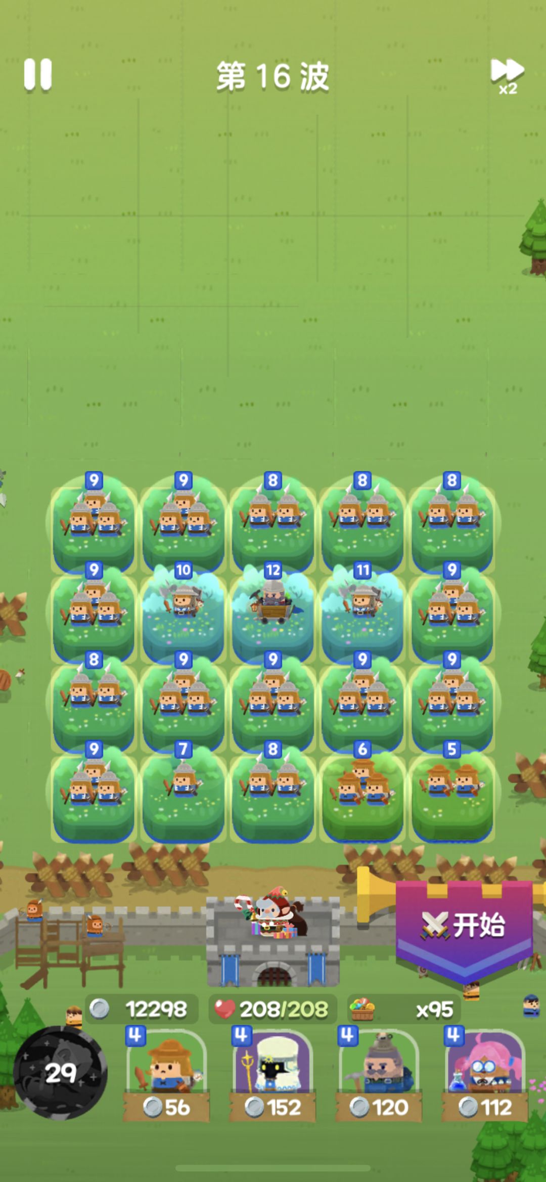 (图中在16波的时候,把中间的矿工升到了12级,开始等其他侍从升级 ~)
