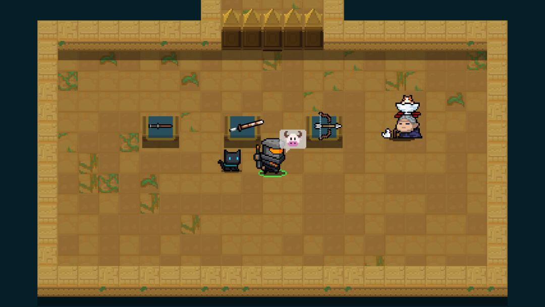 神器分为剑、弓、法杖三类,每一类都有15种武器,而每种武器会分成三个部件。在初始房间选择一把武器后,该次冒险中便只会掉落该类武器的部件。骑士们能从战斗房间宝箱、商店、宝箱房间收集获得部件;(在此模式中部分特殊房间如导师房间、机甲房间等不会出现)
