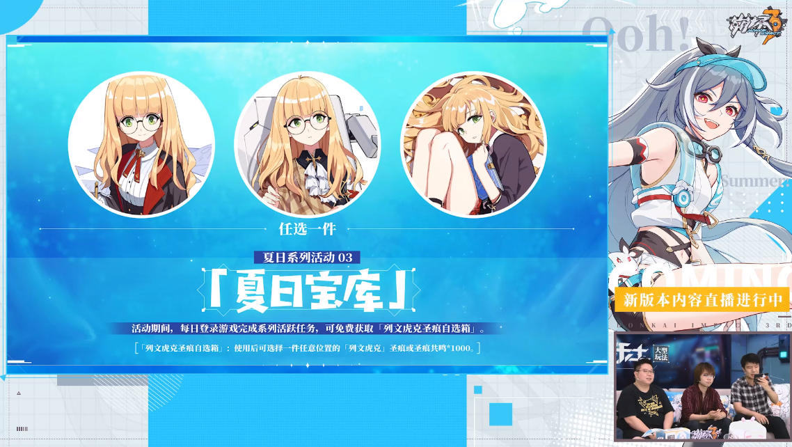▲ 夏日版本活动,以及识之律者和彼岸双生的夏日新服装。
