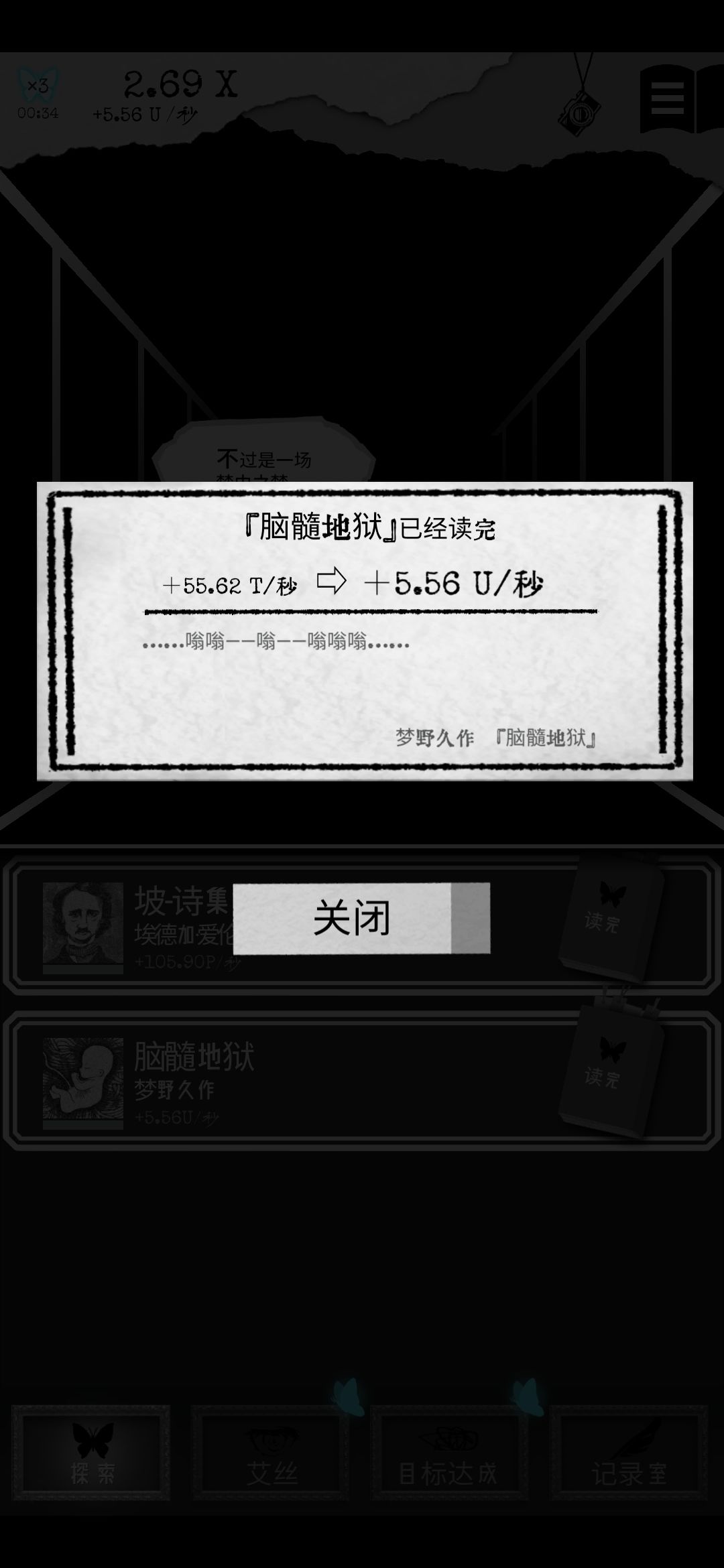 经过我和我爸三四天的共同努力,终于读完脑髓地狱了!!然后艾丝闲聊的时候她还给我安利脑髓地狱来着,因为感觉好像挺好看的,所以准备慢慢把脑髓地狱本体也读了,这其实是个书籍安利游戏哒