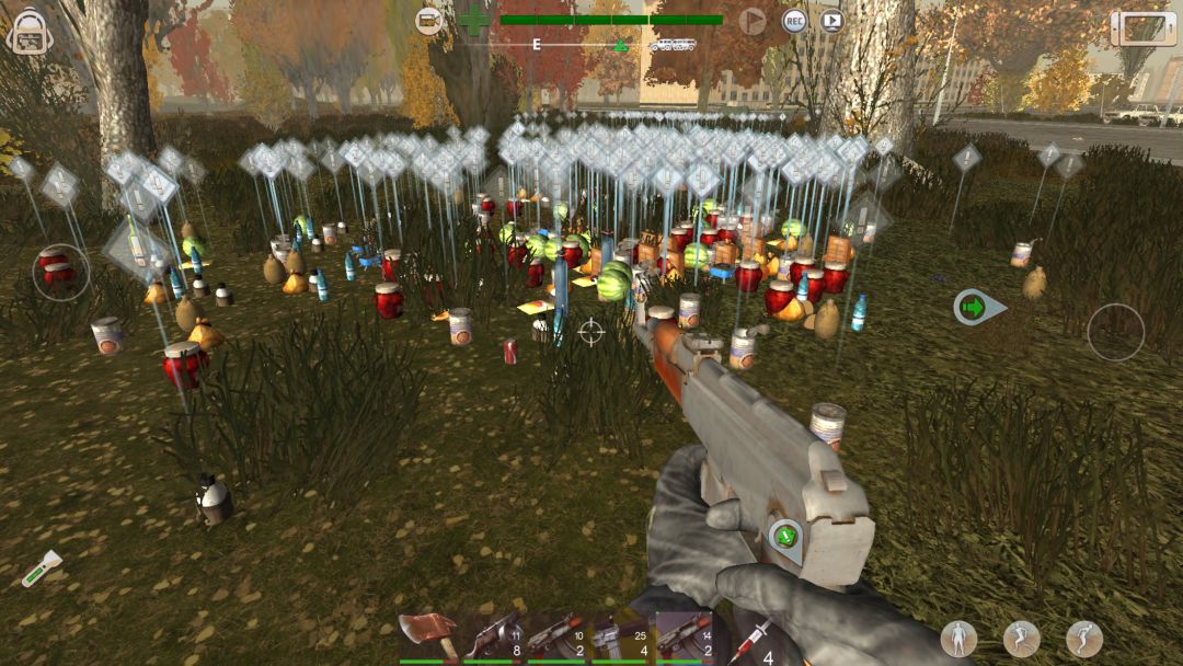自己选择一个喜欢的地方当作根据地,把收集到的所有物资分类丢在地上(这点是我有强迫症),时间一长物品会卡的增多(只要你收集的多就相当于无线资源)这是游戏里的bug看到图片上比较深的白色感叹号了嘛,就是时间长了丢在地上卡出来的物资。