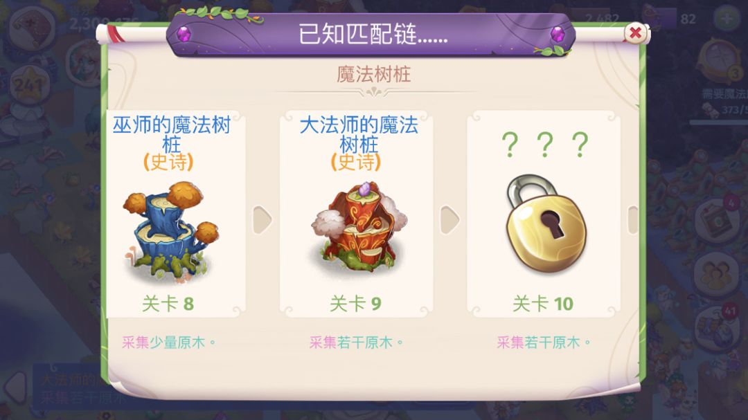 然后可以用精灵刷树桩,树桩分两种,一种是原始木桩,一种是等级木桩。如果用体力撸原始,可以撸三次,也就是三个1级魔法树,魔法树桩高级了之后撸一次就是四级木头(75),然后精灵多的话(你懂的,树桩建议刷到9级,目测10级产出跟9级一样,如图