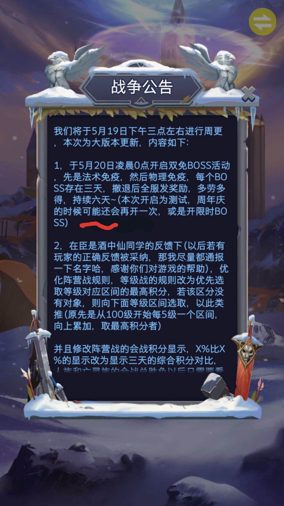 原来大头玩了个sao操作:把本应该分开的两个活动(双免boss和集字活动)分开两个服同时测试,结果被落叶大佬看到了,不服了,为什么我官服的福利居然还没一个渠道服的好?于是立马开帖,对线大头。还拉上聊天室的小伙伴一起去吃瓜。最后的结果嘛?可以去下面贴的传送门进去围观。