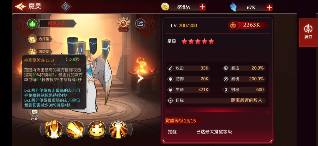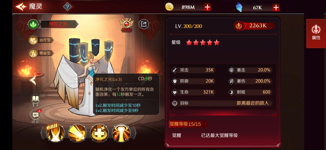 4技能净化之光,强力净化技能,对所有负面效果生效。唯一不足之处就是只能净化一个,而且冷却时间还长,只有到7星之后才会好点。