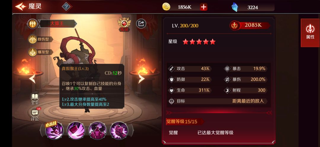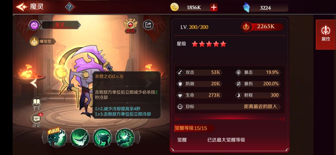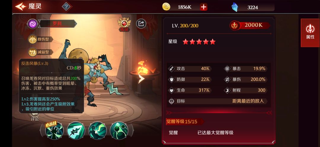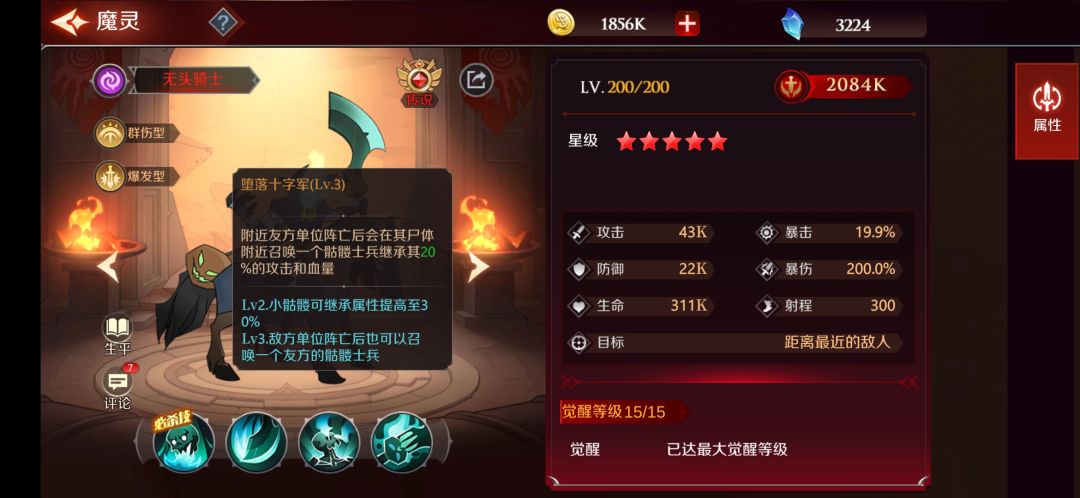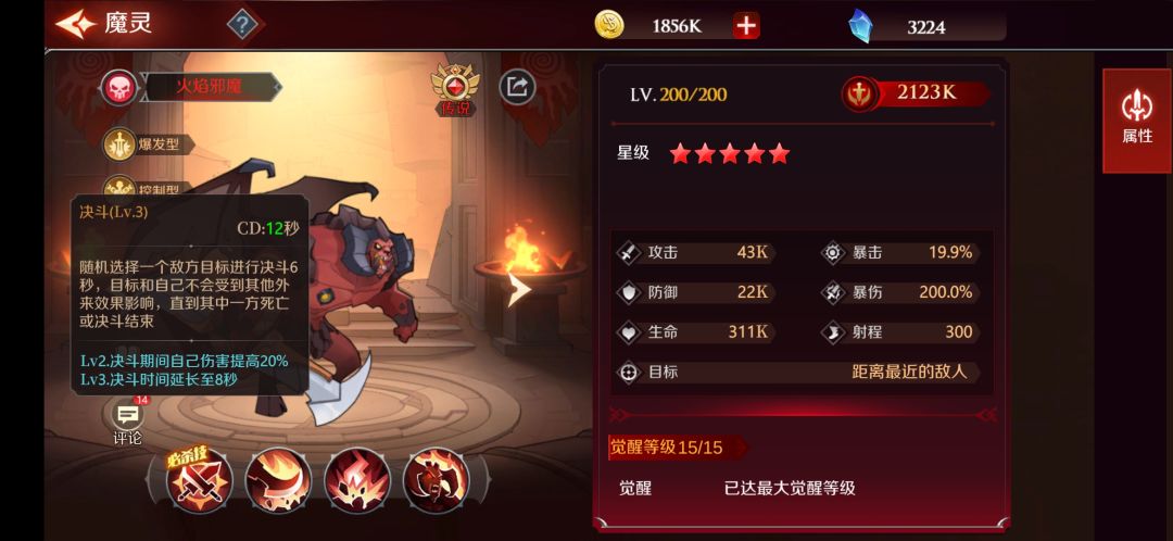 必杀技找人单挑不受打扰,单挑过程伤害增加。为单挑而生的魔灵,某些关卡上阵有奇效,大部分时候用不着,毕竟大家都是群殴。